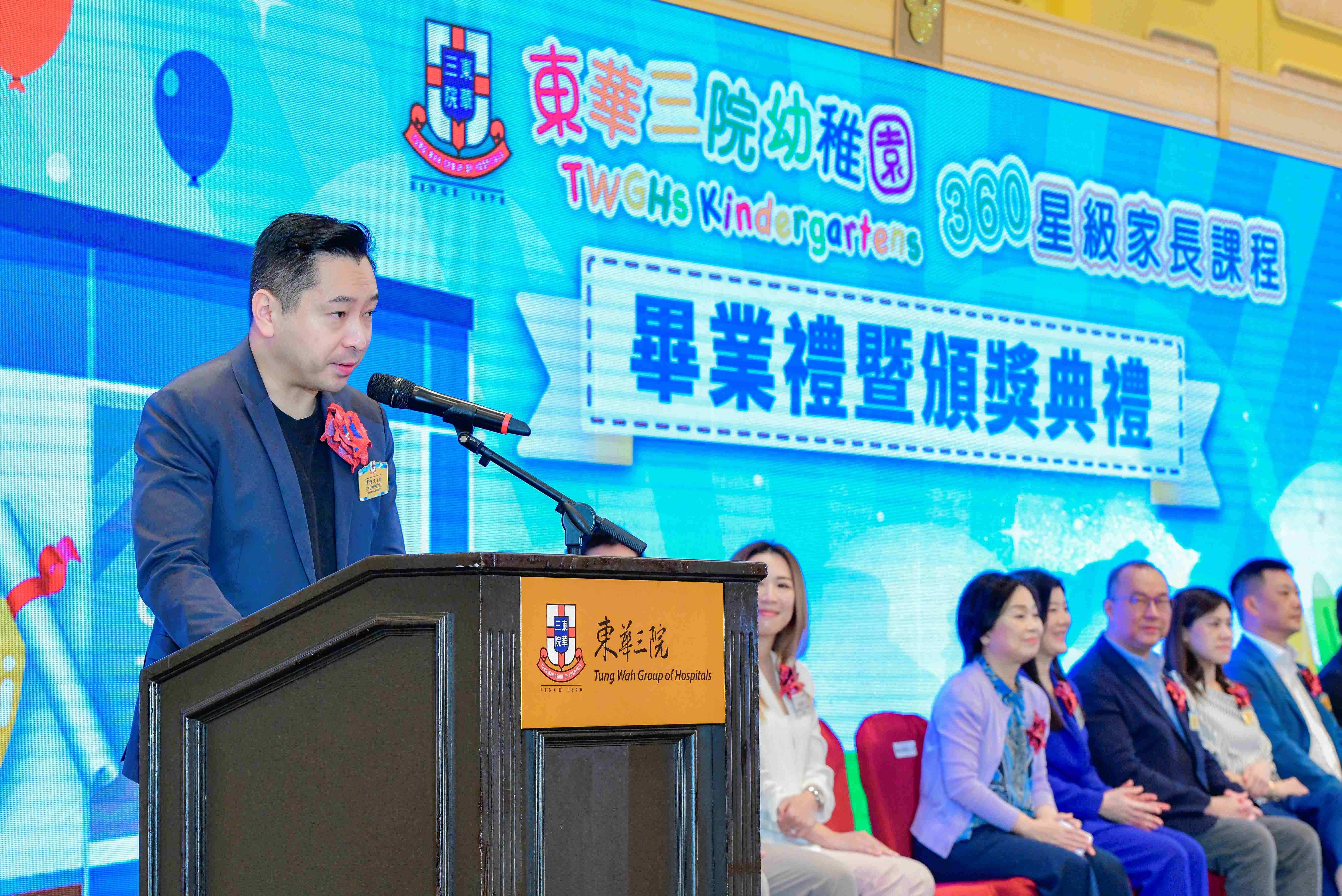 为了嘉许家长的积极参与,该毕业礼暨颁奖典礼于2023年7月15日于香港迪士尼乐园酒店圆满举行,更十分荣幸邀请了教育局局长蔡若莲博士太平绅士莅临主礼,于典礼上肯定本院为幼儿教育作出的努力及勉励家长积极培育幼儿成长,并在东华三院癸卯年董事局主席兼校监韦浩文先生陪同下,颁发毕业证书给本届家长毕业生代表。