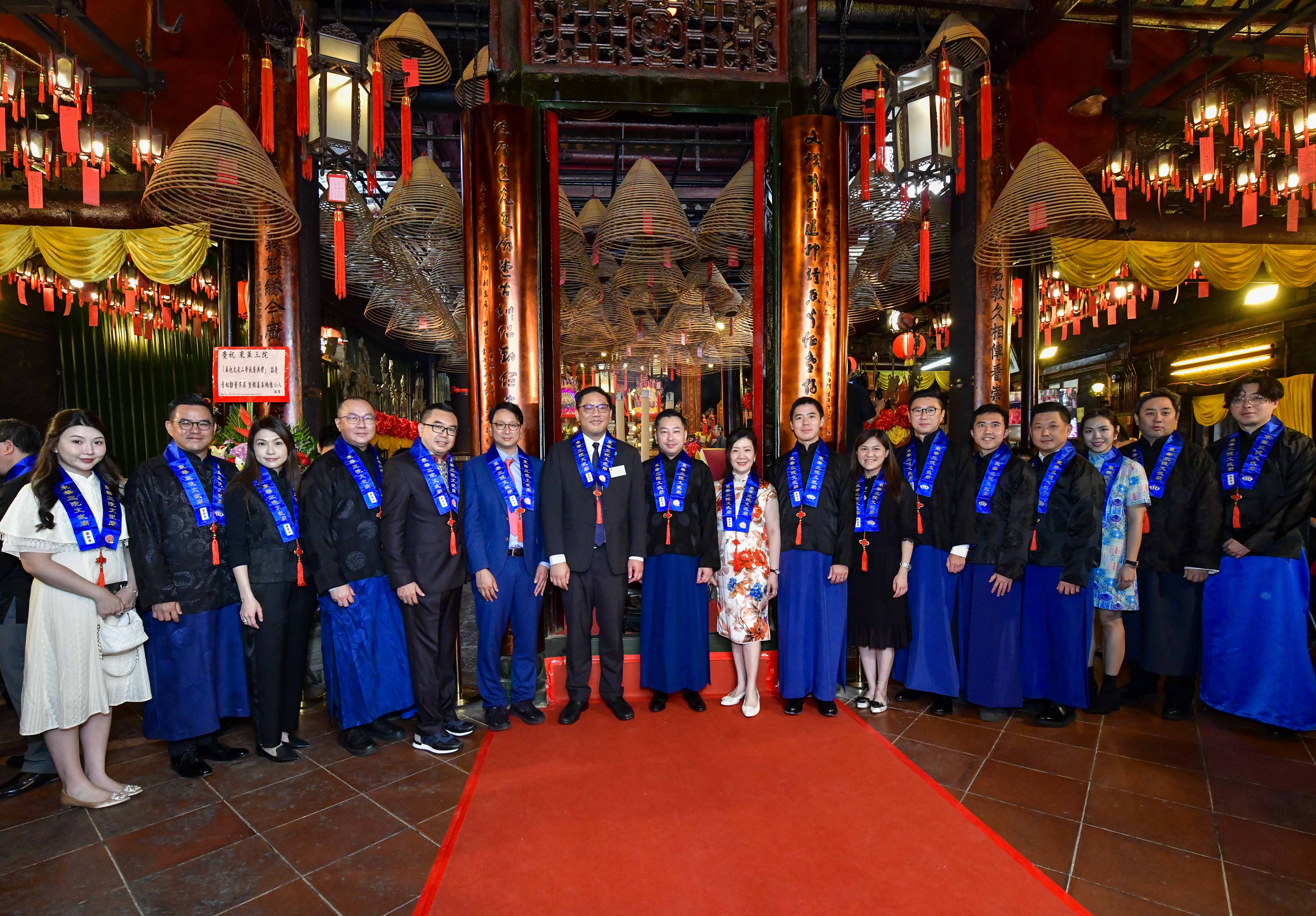 图四为民政及青年事务局副局长梁宏正BBS太平绅士(左七)与东华三院董事局成员于文武庙内合照。