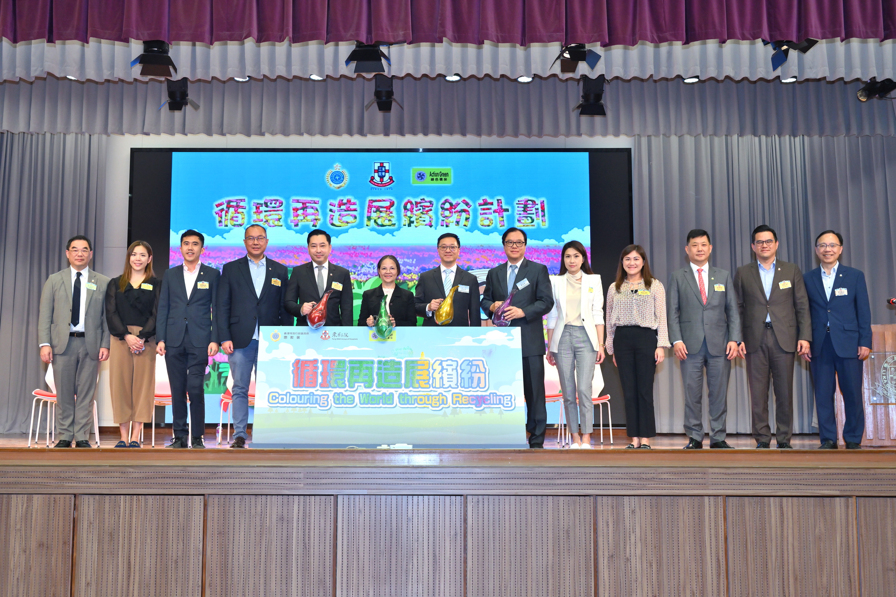 东华三院主席韦浩文先生表示﹕「东华三院一直关注环保议题,在医疗衞生、社会服务及教育各方面的运行上全面推行环境保护政策。早年,本院已成为环境及自然保育基金首个非政府机构的『绿色伙伴』,为业界树立典范,令更多非政府机构相继加入『绿色伙伴』的行列。是次的跨机构合作,携手开展『循环再造展缤纷』玻璃回收活动,将培养学生的环保意识,为地球的可持续发展出一分力,并向大众推广废料回收及循环再造精神,更可支持在囚人士更新,意义重大。」